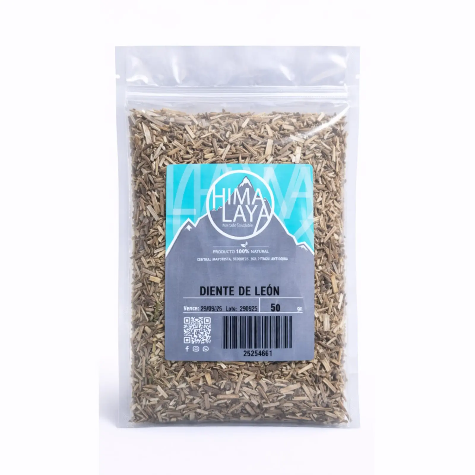 Hojas y raíces deshidratadas de la planta Taraxacum officinale. Se presenta como una mezcla de fragmentos verdes y marrones. Tiene un sabor herbáceo característico, con un toque amargo que es, precisamente, el indicador de sus potentes propiedades medicinales para el sistema digestivo. Beneficios y mas en la parte inferior ⬇️
