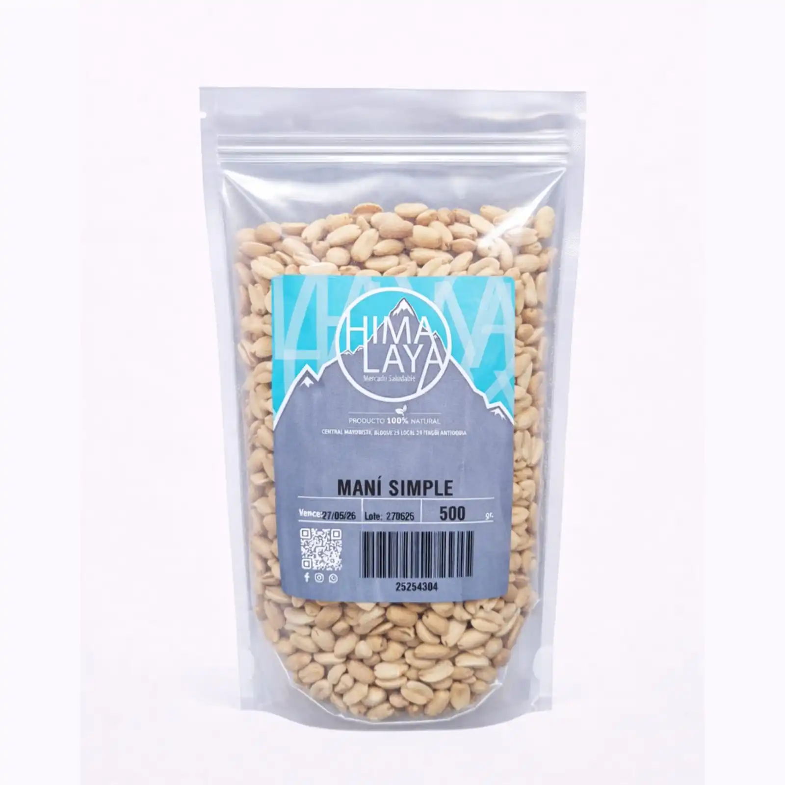 Granos de maní (Arachis hypogaea) seleccionados, sometidos a un proceso de tostado uniforme que resalta su sabor natural y les otorga una textura crujiente. Al ser «simple», no contiene sodio añadido ni recubrimientos, lo que lo convierte en un ingrediente básico y saludable para cualquier dieta.