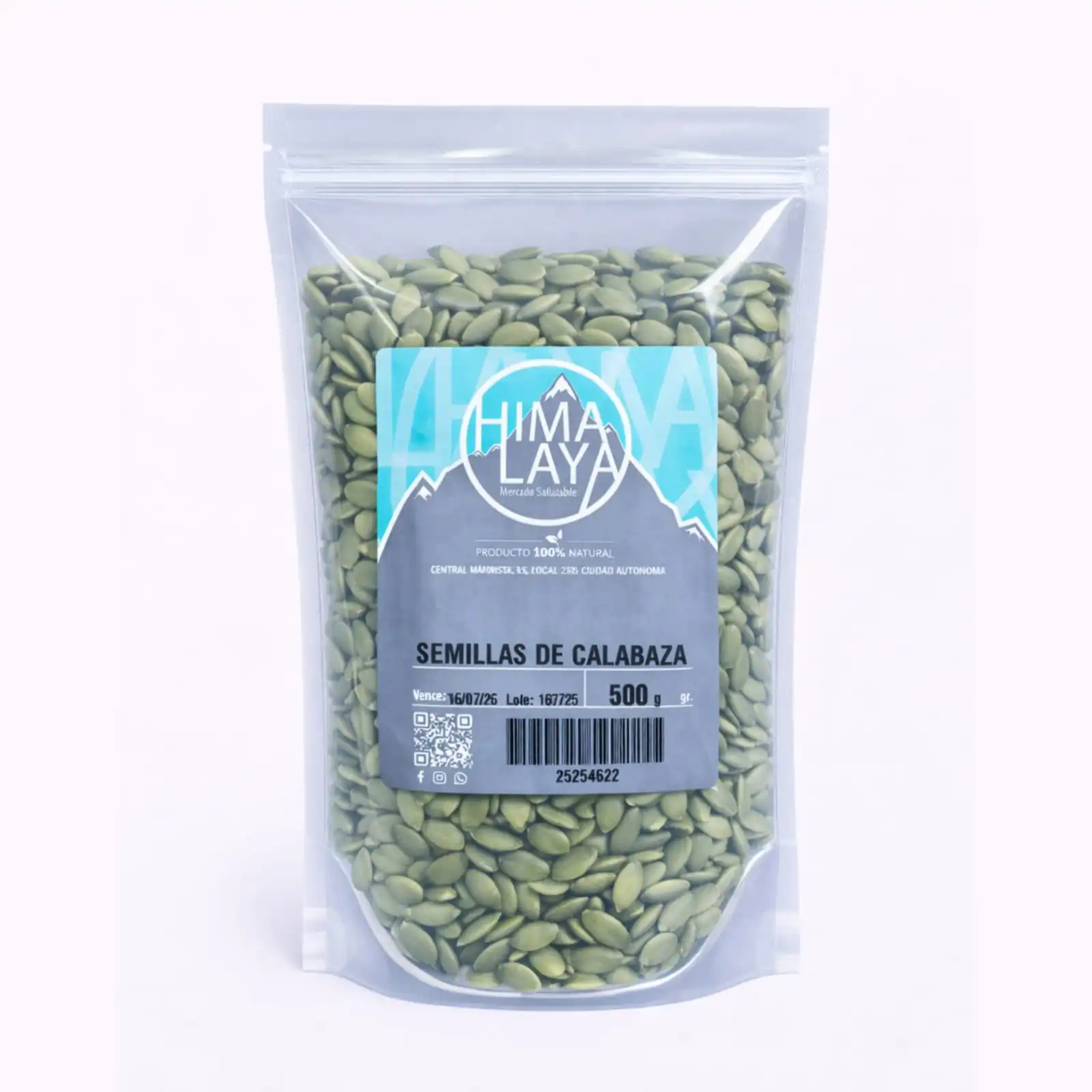 Semillas peladas (sin su cáscara blanca exterior) del fruto de la Cucurbita pepo. Se presentan en forma de pepitas ovaladas de un color verde oscuro característico. Tienen una textura crujiente y un sabor suave, cremoso y ligeramente dulce, que recuerda a la nuez tostada. Beneficios y mas en la parte inferior ⬇️